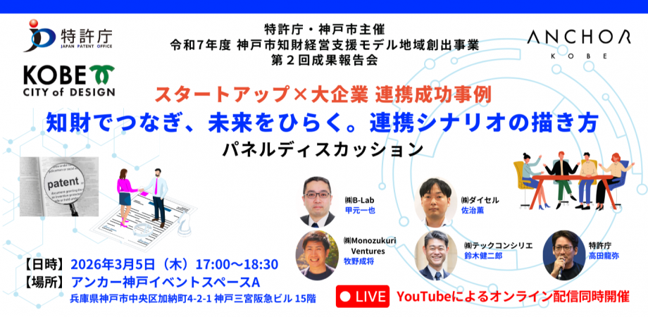 2026.03.05 特許庁主催パネルディスカッション(第2回)スタートアップ×大企業 連携成功事例「知財でつなぎ、未来をひらく。連携シナリオの描き方」※オンライン視聴あり